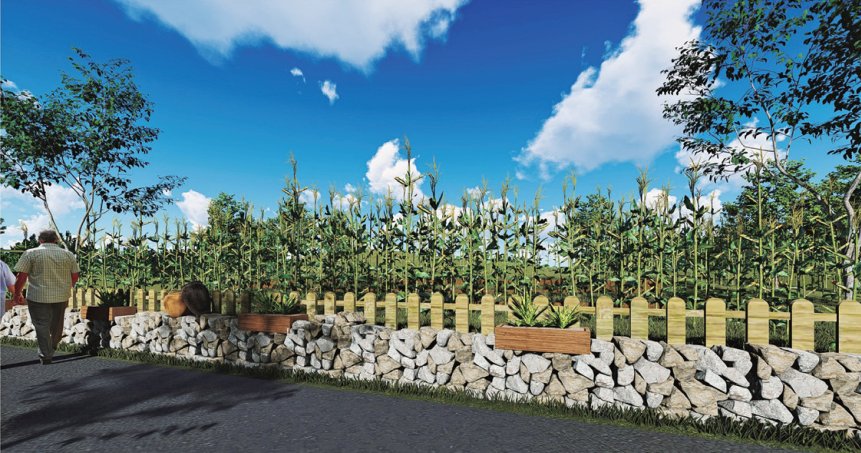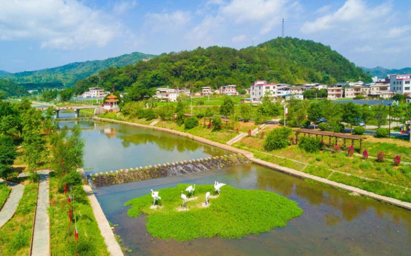 结合河道周边的种植布局,适当增加了有色种植、花果廊架等,为芳塘景观增添美感;结合村庄景观布局,适当在河道周边增加步道、健身设施、滨水平台、休闲活动、遮阳遮雨篷等小型的、为村民的日常休闲提供服务的带有景观美感的设施。亲水栈道、休息廊亭、休闲吊桥等设施的材料选用以木质为主,村民、游客漫步在廊道上,既能与古树、溪流亲密接触,又不会破坏河道自然生态。